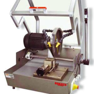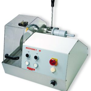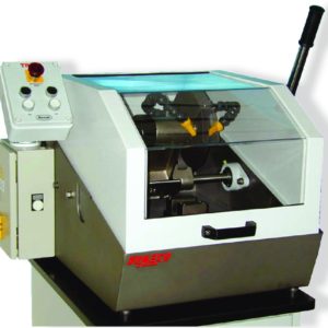 le contrôle de l’avancement de l’échantillon confié à l’opérateur à l’aide du levier de commande externe. La vitesse de rotation de la roue réglable en continu (0 – 3000 tr / min) et la translation transversale du bras du porte-échantillon au micromètre permettent la découpe et l’amincissement de tout type de matériau.Une grande attention a été portée à la suppression des phénomènes d’usure et de corrosion: le corps de la machine et tous les composants principaux sont en acier inoxydable; les composants internes sont en acier revêtu de nickel chimique ou en anticorodal. La tronçonneuse de précision a été construit conformément aux normes de sécurité les plus contraignantes : panneau de commande basse tension (24 V); écran en polycarbonate transparent qui isole la zone de travail; micro-interrupteur de sécurité qui arrête toutes les fonctions avec le couvercle ouvert; bouton d’arrêt d’urgence.