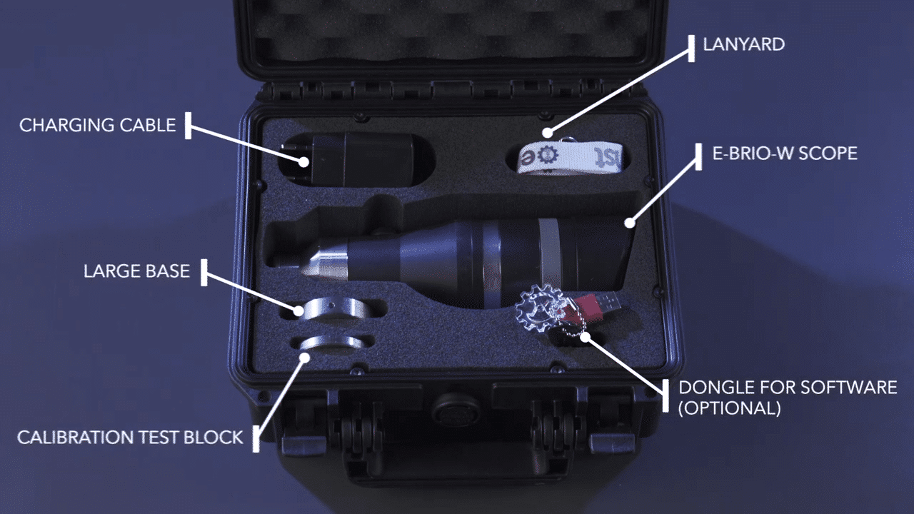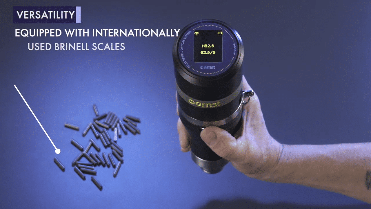 E-BrioWL combiné au logiciel SW peut également être utilisé pour mesurer des empreintes réalisées avec des duromètres à pointes calibrés. Il suffit de positionner la tête d’analyse de l’e-BrioWL sur l’empreinte, d’appuyer sur un bouton et le résultat s’affiche directement à l’écran dans l’échelle de Brinell sélectionnée, avec la conversion vers l’échelle choisie et le diamètre de l’empreinte. Le temps nécessaire pour une mesure est d’environ 1 seconde.