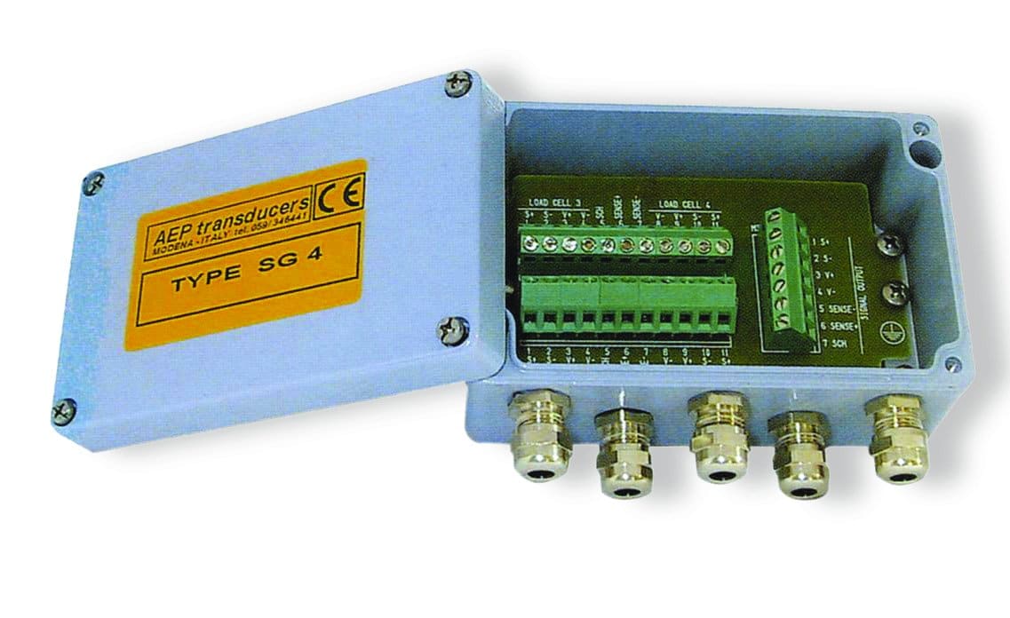 Ce boîtier de raccordement permet de connecter jusqu’à 4 capteurs de force (de tous types) en parallèle, afin d’obtenir un seul signal de sortie, lequel représente le total des signaux des capteurs de force connectés. Le boîtier en aluminium moulé et les passe-câbles, garantissent une protection de classe IP 65.