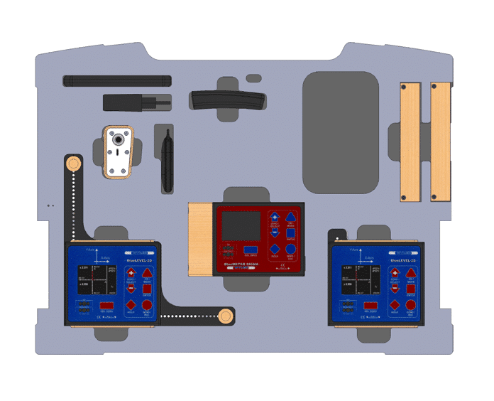 Le pack Blue-System II 005 comprend deux inclinomètres BlueLevel 2D connectables en BlueTOOTH :