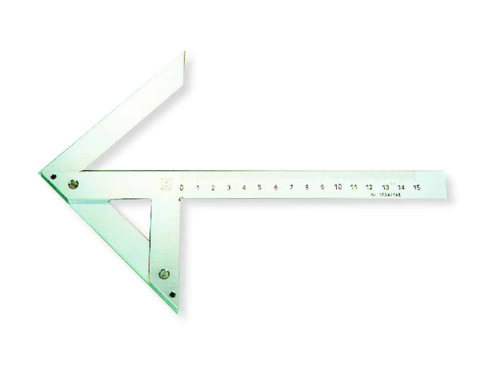 Equerres à centrer en acier chromé avec règle graduée en mm.